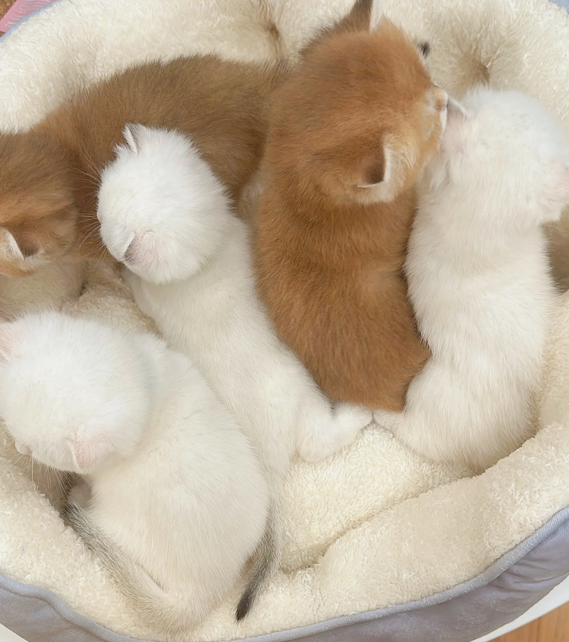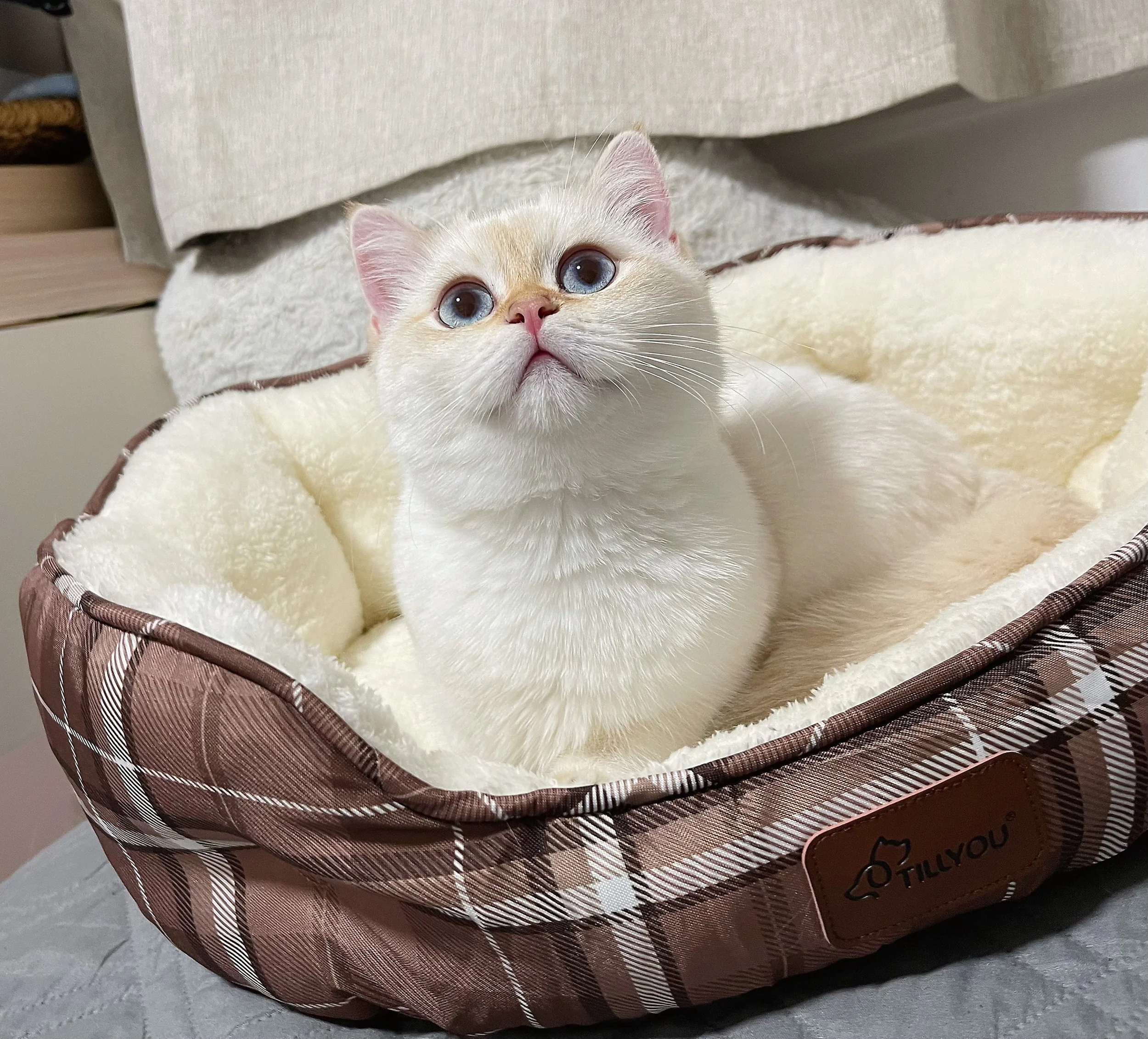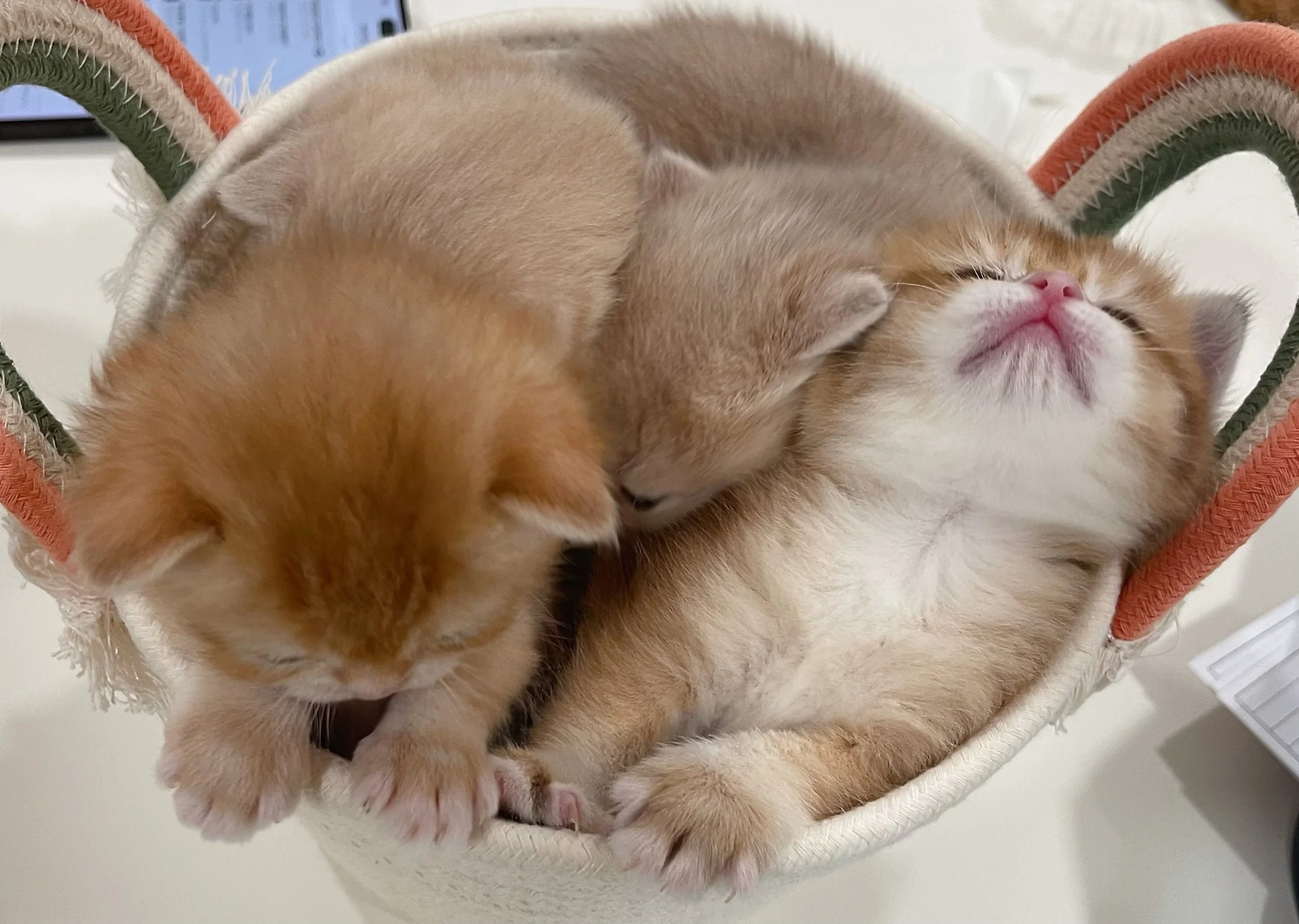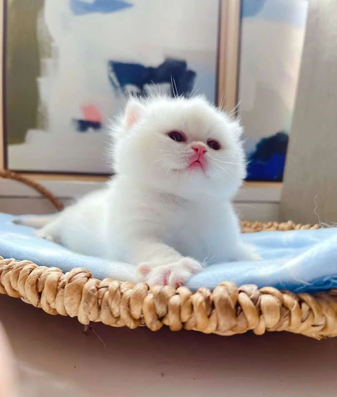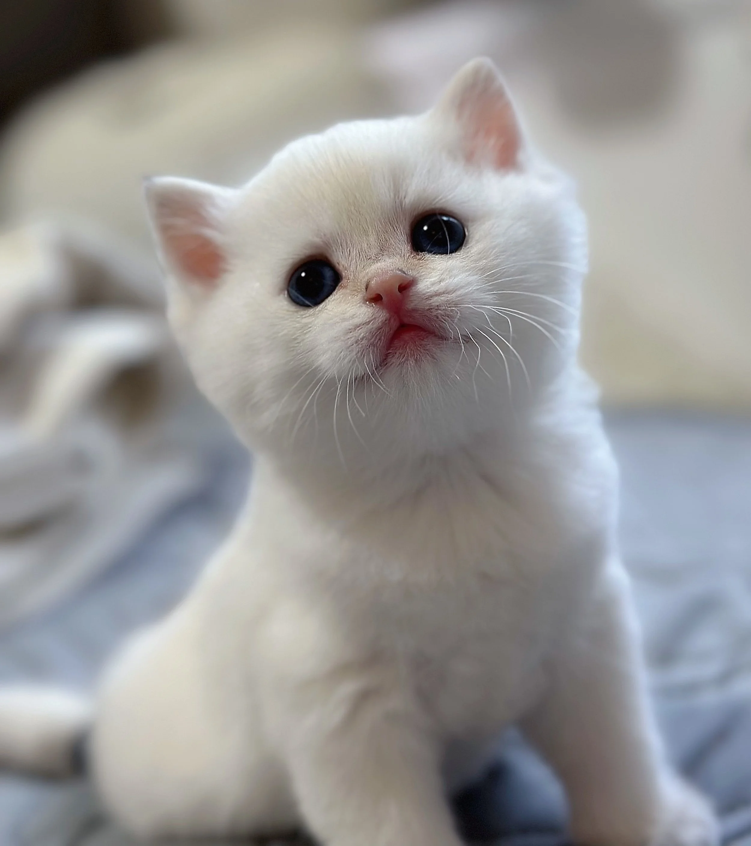 Baby boy is a Golden Point British Short Hair, with color code NY1233. This little guy is incredibly fun and playful! He loves all kinds of toys and tunnels, and his round, snow-white body is simply adorable. As he grows, he’ll develop a striking golden coloring on his back, nose, ears, and tail. He adores belly rubs and is the most vocal in the litter, meowing for hugs when he wakes up from his naps and for food when he’s hungry. His interactive nature makes him a delightful companion!