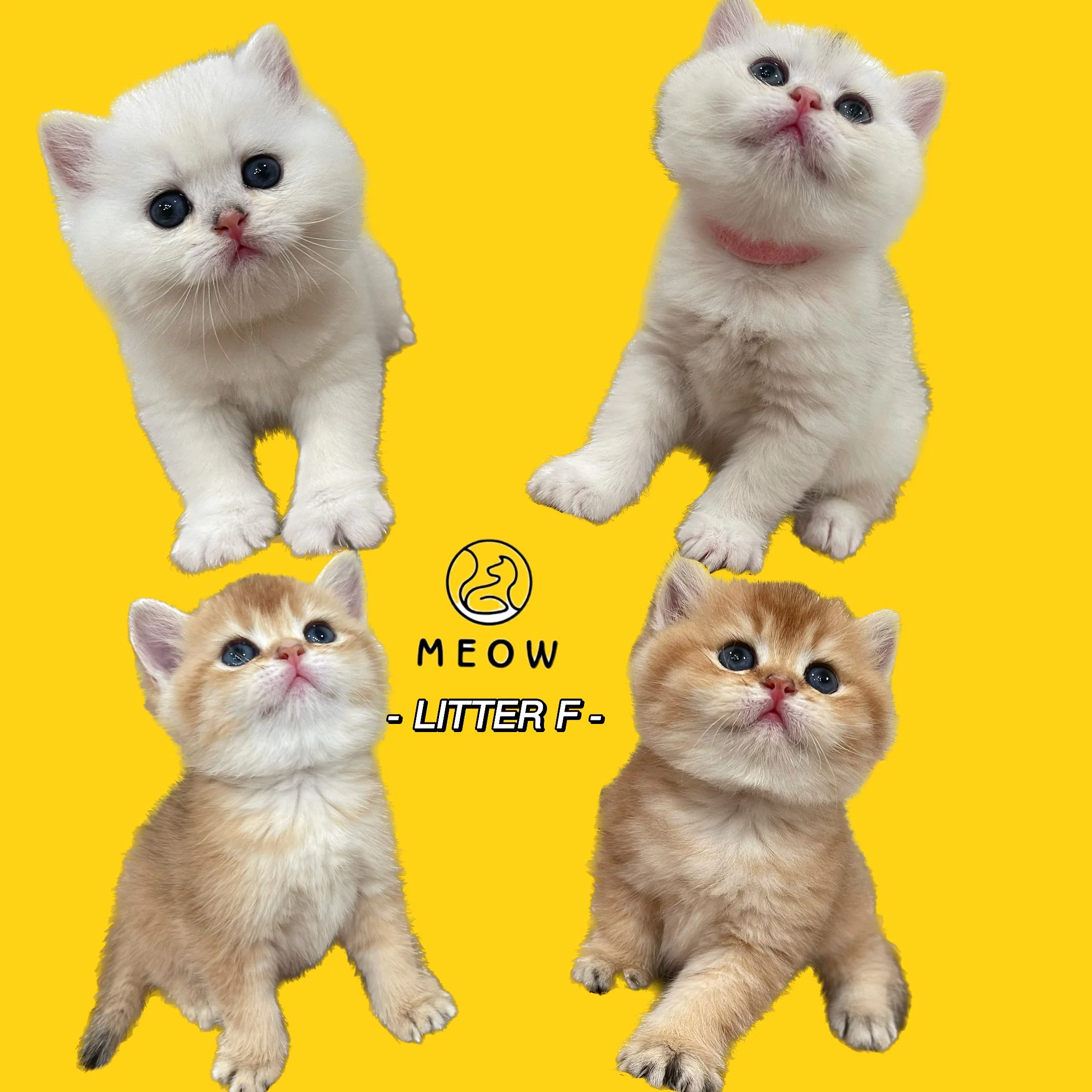 Baby girl F4 is a British Short Hair kitten with color code NY11. She has a super round face that looks just like a little teddy bear, and her golden shaded hair color is such a perfect combination. She loves lazily laying there for us to massage her belly.